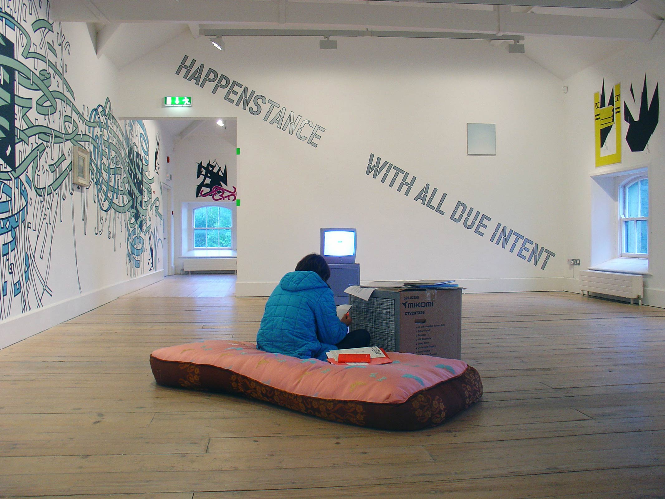 COALESCE was a project curated by Paul O’Neill, “an on-going ‘exhibitionary’ project which creates a mutating environment of overlapping painting, video, and text-based exhibitions in constant migration and held at key locations”. To quote the press release, “works and curated projects ‘coalesce’ and co-habit with one other, overlapping and interweaving in the gallery space to create one coalescent whole, yet always as a re-appearance, out of view of the embedded history of its serial mutations.”