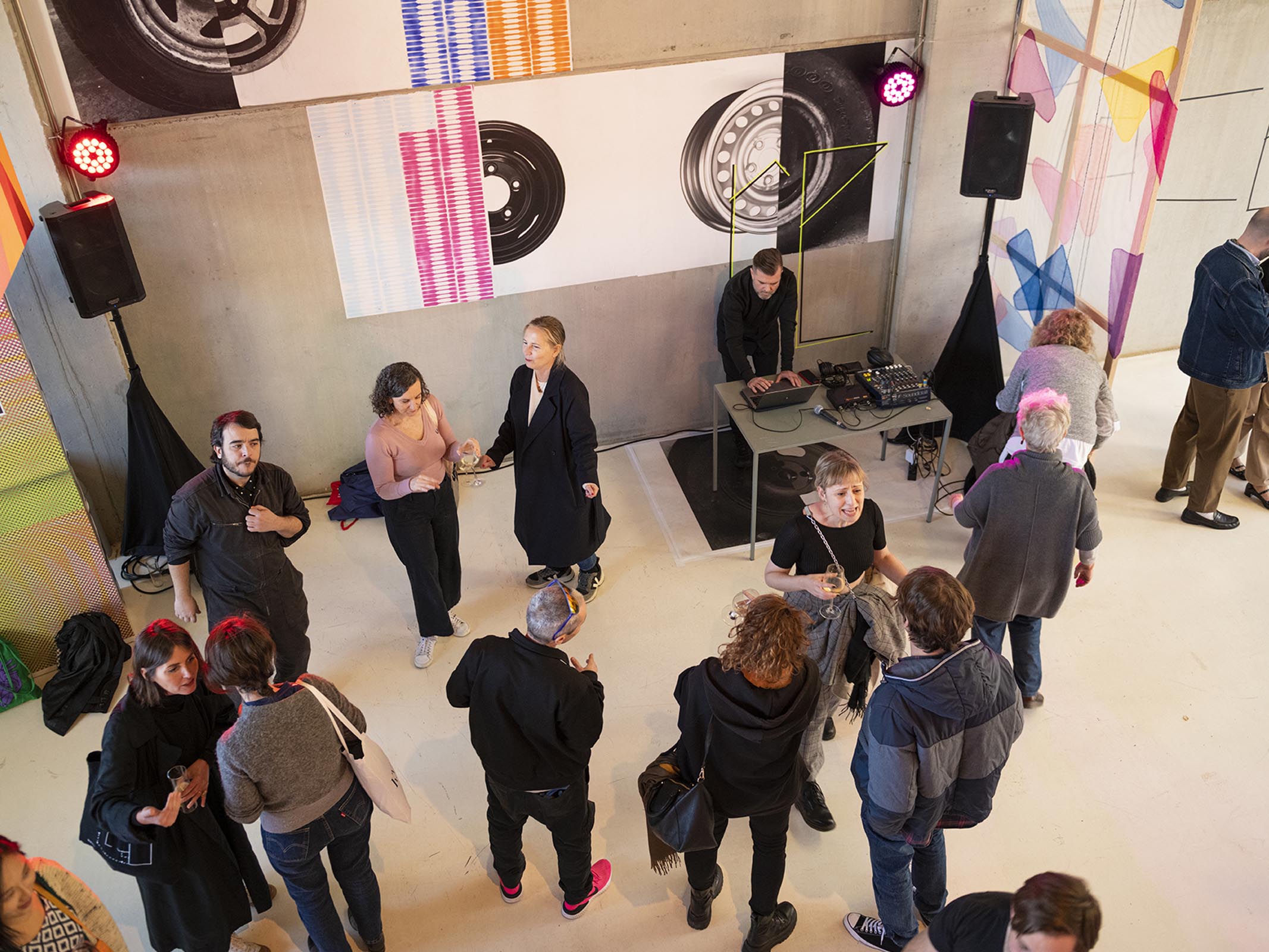 The most recent exhibition in the series, titled Coalescence: Sometime Later, is co-curated by Paul O’Neill at The Showroom with the participation of recurring artists Böhm, Gili and Padilha, who, together with newly commissioned artist George Storm Fletcher, intervene in the architecture of The Showroom to construct a collaborative environment for other artworks and performances. Along with the reappearance of artists from previous editions such as Sarah Pierce, Harold Offeh and Freee Art Collective, artworks co-mingle to provide the stage for a curated series of performance activations by Zein Majali and Vivienne Griffin co-curated with Offeh.