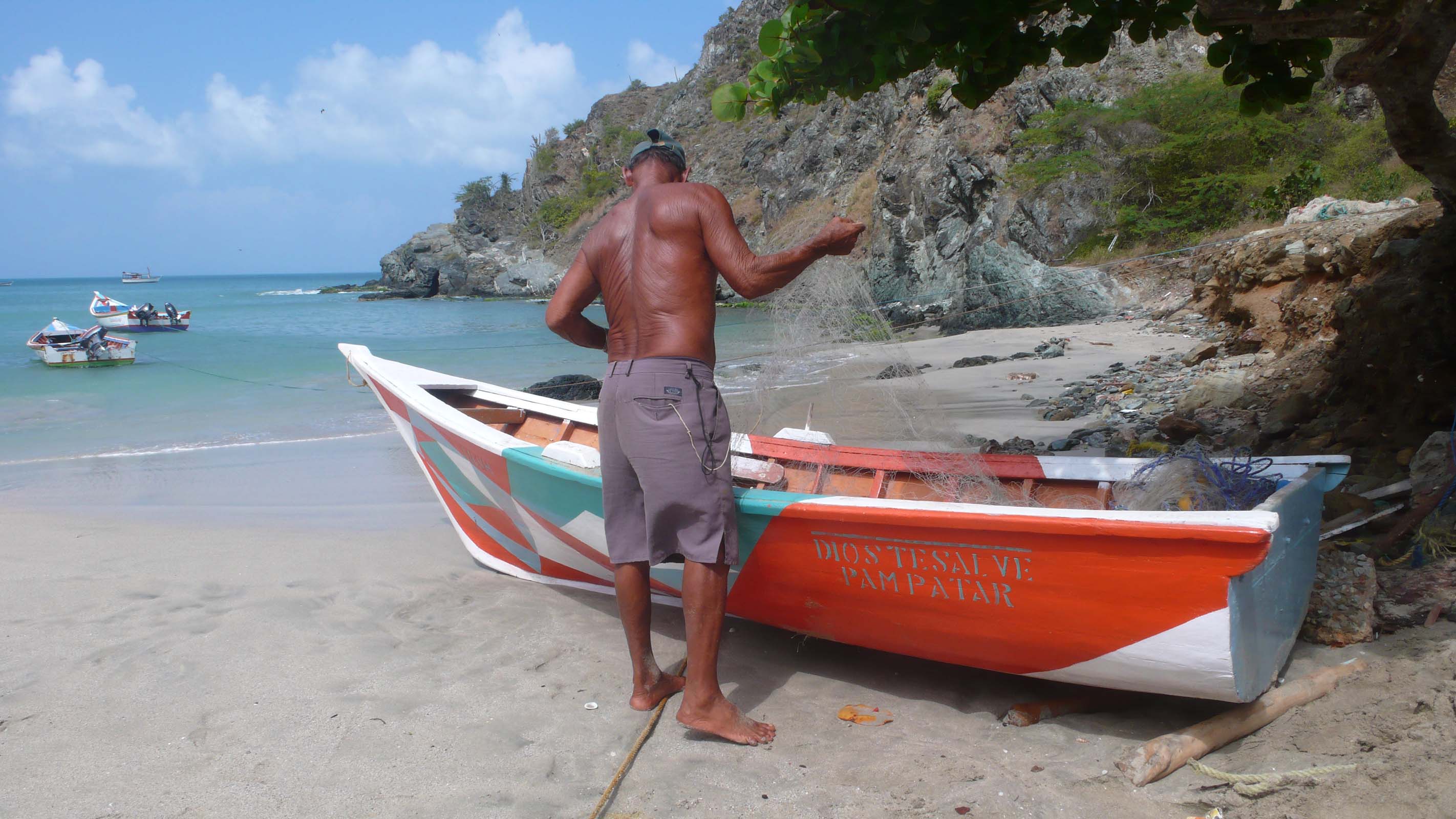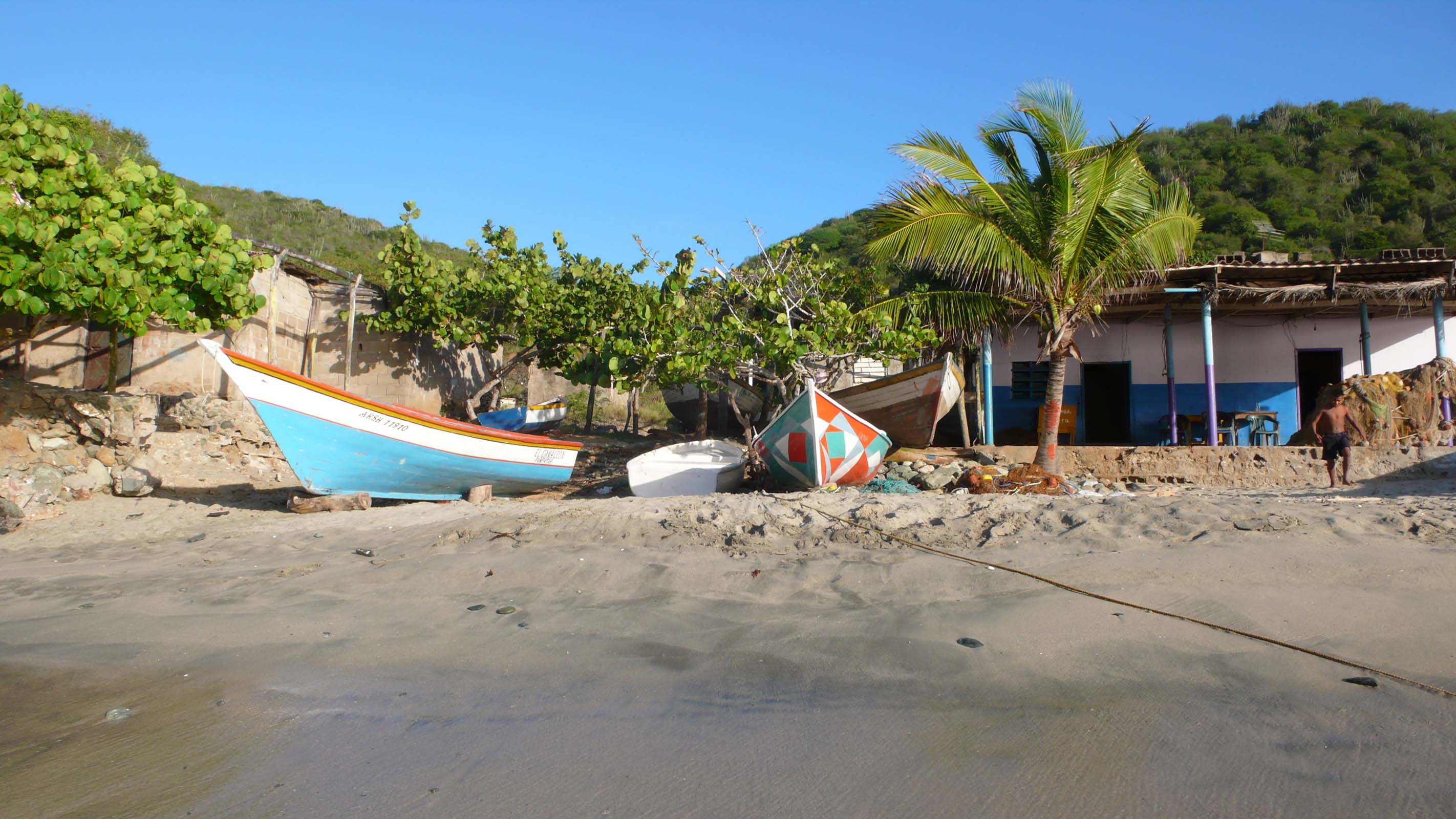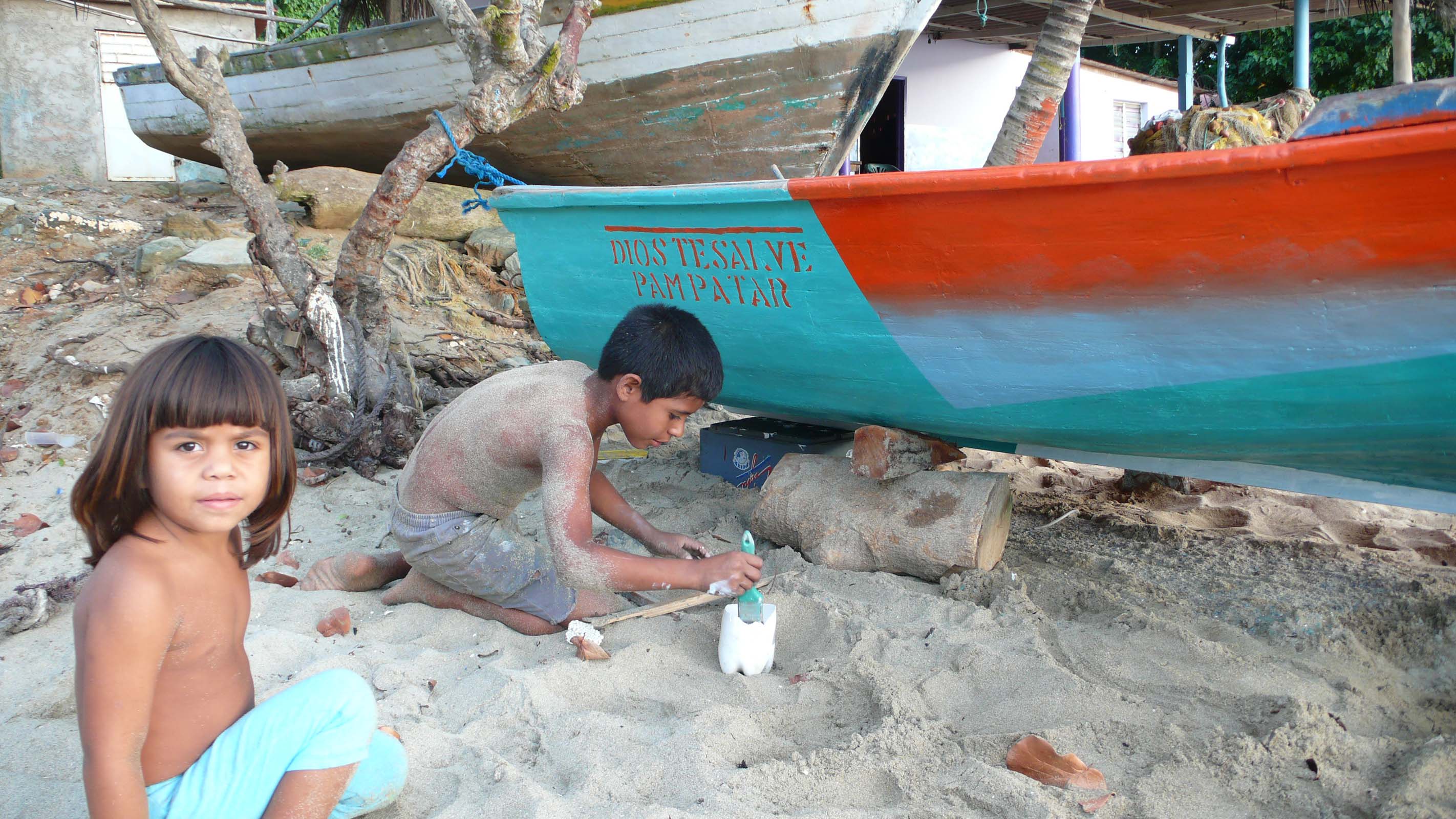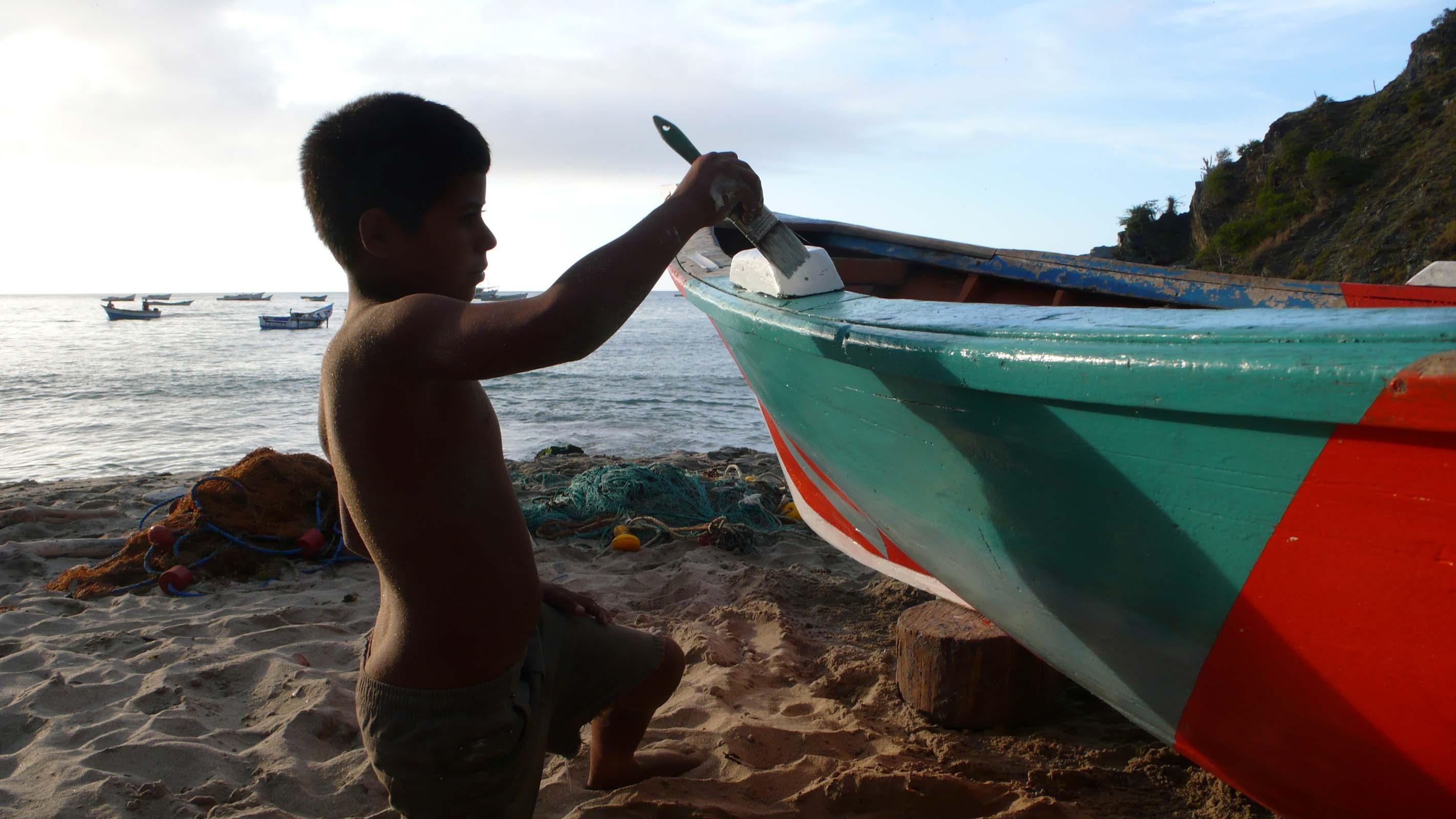 This project consists of a painting on the exterior of a boat owned by “Taco” Hernández, a local fisherman whose family Gili has known for a long time. The main idea was to plant a seed of possibilities in the minds of the local boat painters like the child who helped the artist on site. Perhaps one day the boats will be painted to speak a different language to that of straight parallel lines, and to have more playful designs like those on the buses in major Venezuelan cities.