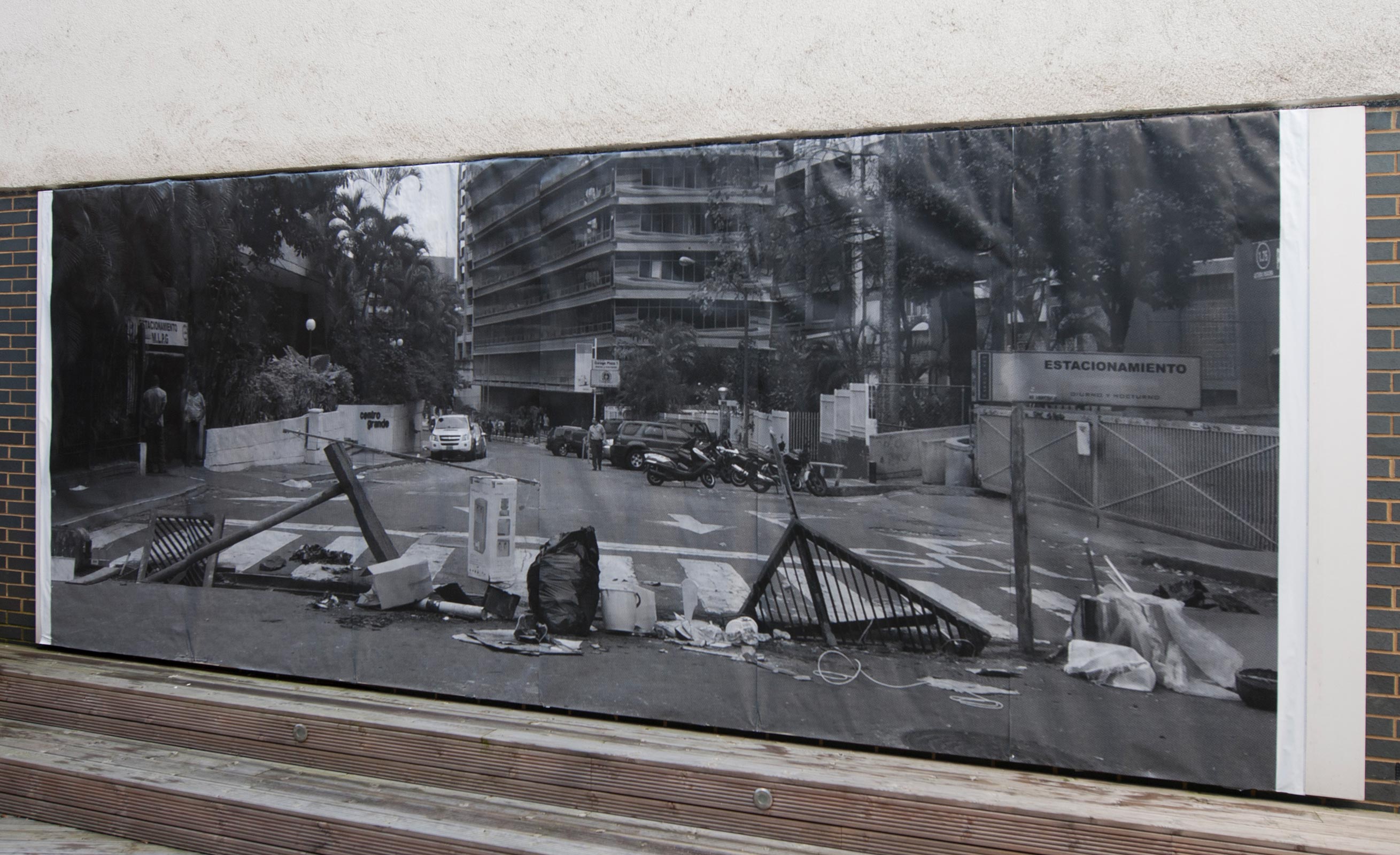 For this exhibition the artist has made a new series of works which interact with the space, becoming conceptual “Guarimbas”, referencing Rosalind Krauss seminal text The Grid, as much as the makeshift barricades put up in Venezuela as a form of protest, blocking normal city life against the current regime. ‘And just as the grid is a stereotype that is constantly being paradoxically rediscovered, it is, as a further paradox, a prison in which the caged artist feels at liberty. For what is striking about the grid is that while it is most effective as a badge of freedom, it is extremely restrictive in the actual exercise of freedom.’ (1)
