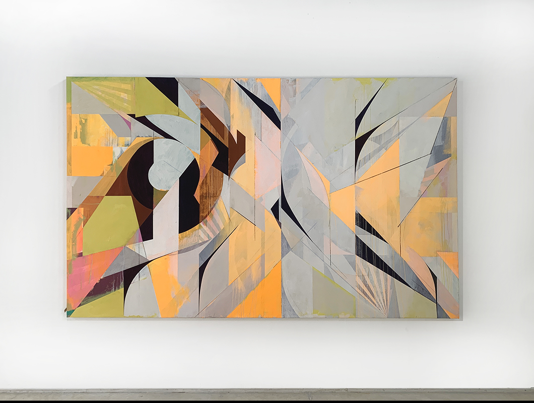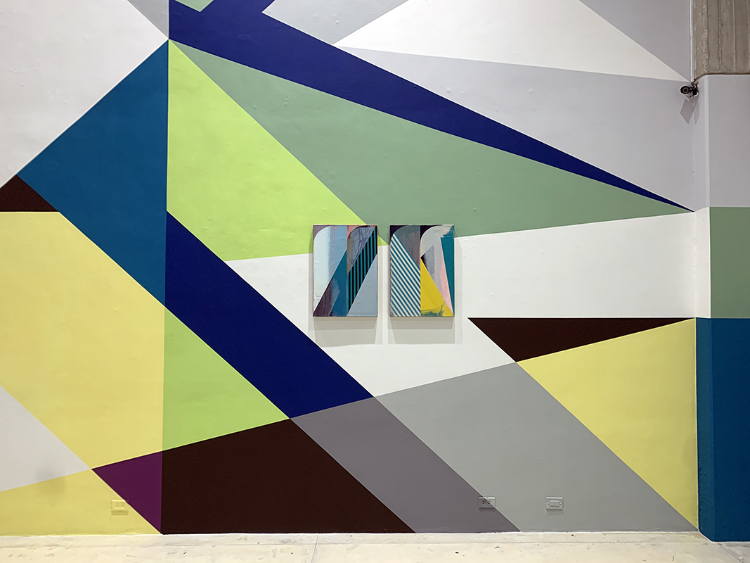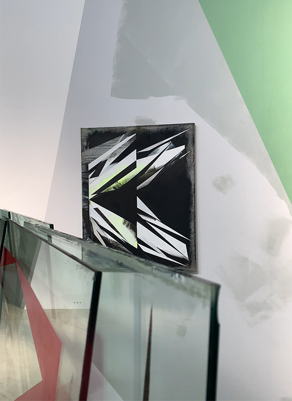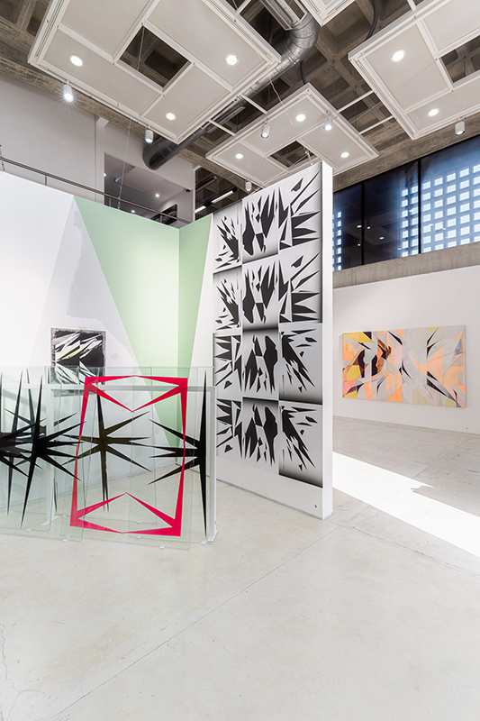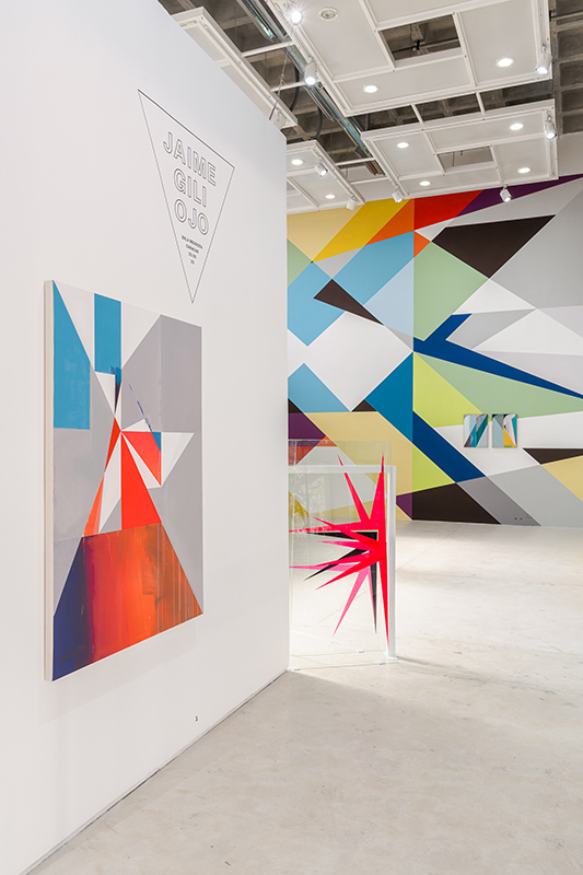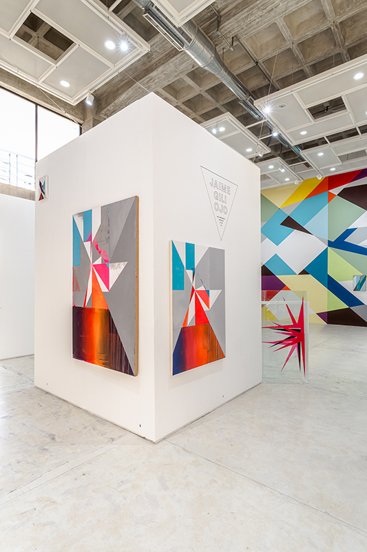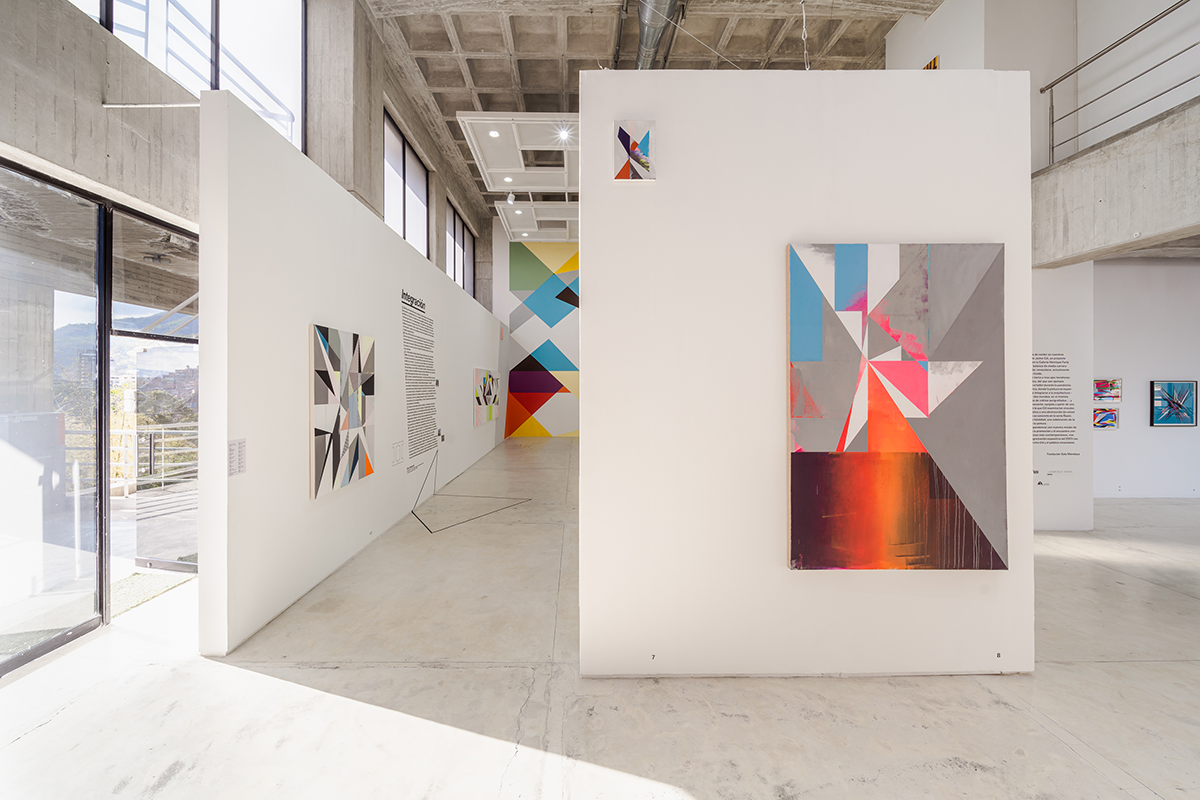 In his text, which presents the first part of the show, Juan Carlos Ledezma writes "The element that in these works is reiterates more insistently is an angular shape that can be interpreted like the repellency of the angles of the pictorial support. Thus the edge or limit of said support is incorporated into the interior of the work, where it is fragmented and multiplied according to its repellent mechanics. This underlines the close relationship that exists between Gili's painting and architecture. Why not It is a question here of works closed in on themselves, but of constructions internally fractured that, therefore, open up to the possibility of exceeding their conventional limits and articulate with architectural volumes. Gili has raised in this way in projects aimed at what he calls the “optical conversion” of public space.