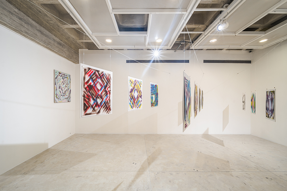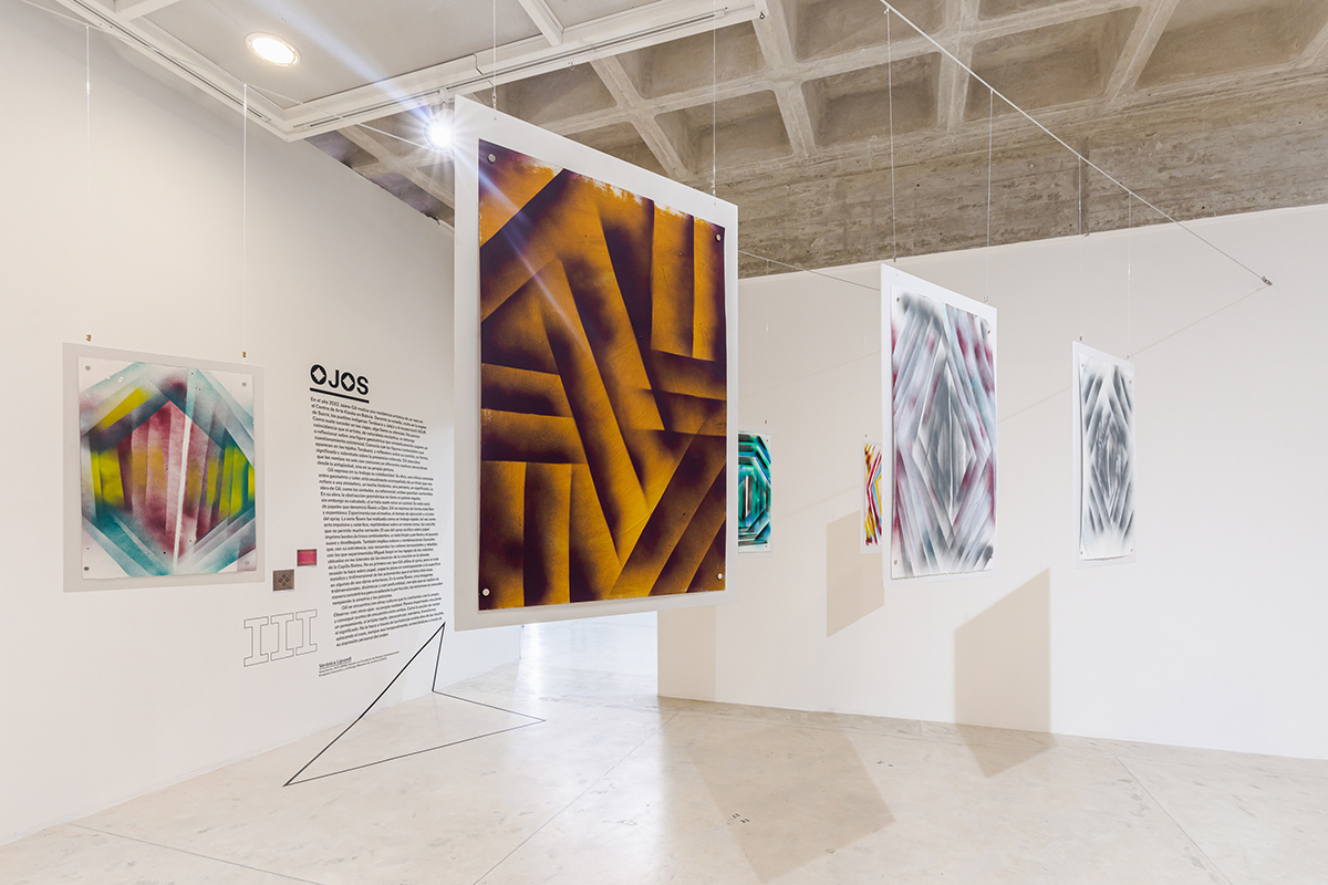 “Gili's work, like the symbols, is referential, both store content. In his work, geometric abstraction does not have a regular pattern, however, is calculated, the artist is usually in control. In this series of papers that called Ñawis or Eyes, Gili expresses himself more freely and spontaneously. Experiment with the moLvo, the Time of execution and the color of the spray. The Ñawis series was done as a quick job, perhaps as an impulsive act and catharLc, repeating itself on the same theme, so simple that it does not allow lots of variation.”