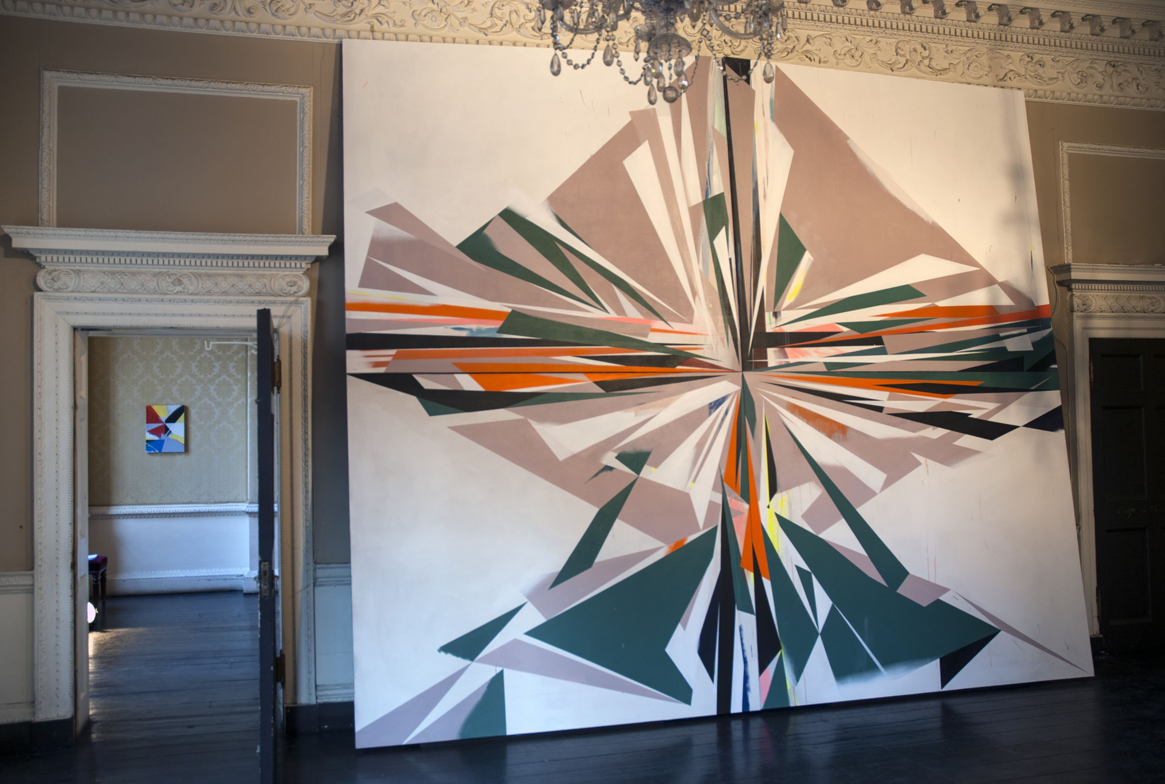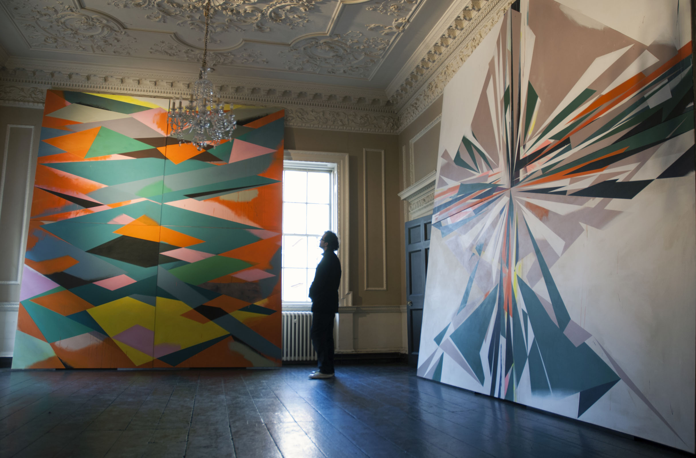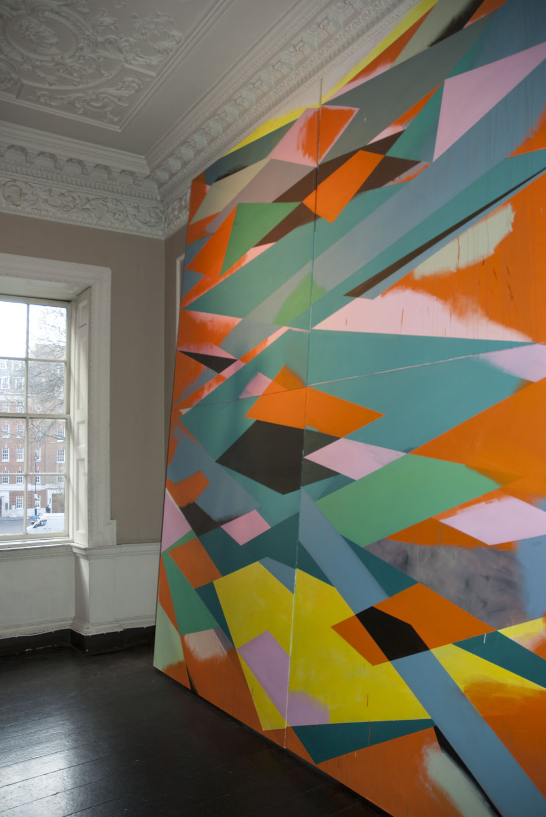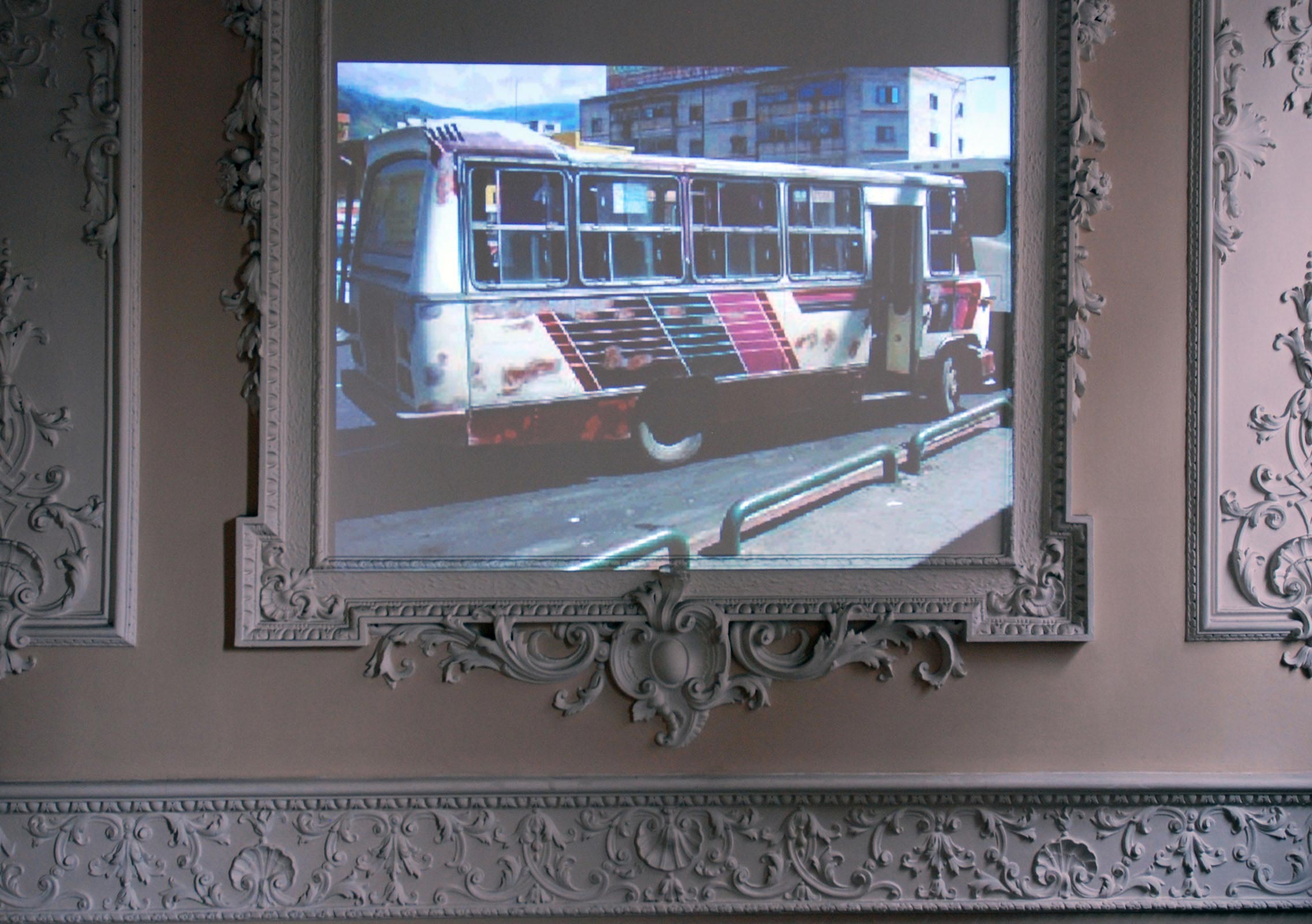 This exhibition, organised by Riflemaker, was the London version of the show with the same title organised the previous year in New York. However, due to the utterly different character of the space as well as the unavailability of the paintings shown in New York, this was quite a different exhibition. Entering the gallery, one first met a projection of Gili’s collection of photographs of Caracas’ urban microbuses, a famously repeated reference to contextualise the origins of his practice. In the main room, three very large paintings were leaning against the walls, fighting for attention within the baroque decoration of the House of St. Barnabas. A central piece was the iconic A127 Gran Salazar, leaning its full 4 meters in height against the wall. Finally, a series of small paintings was displayed in the flock-papered last room.