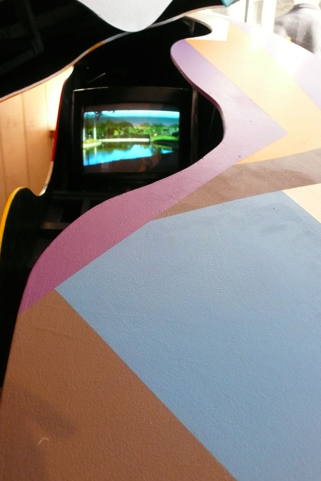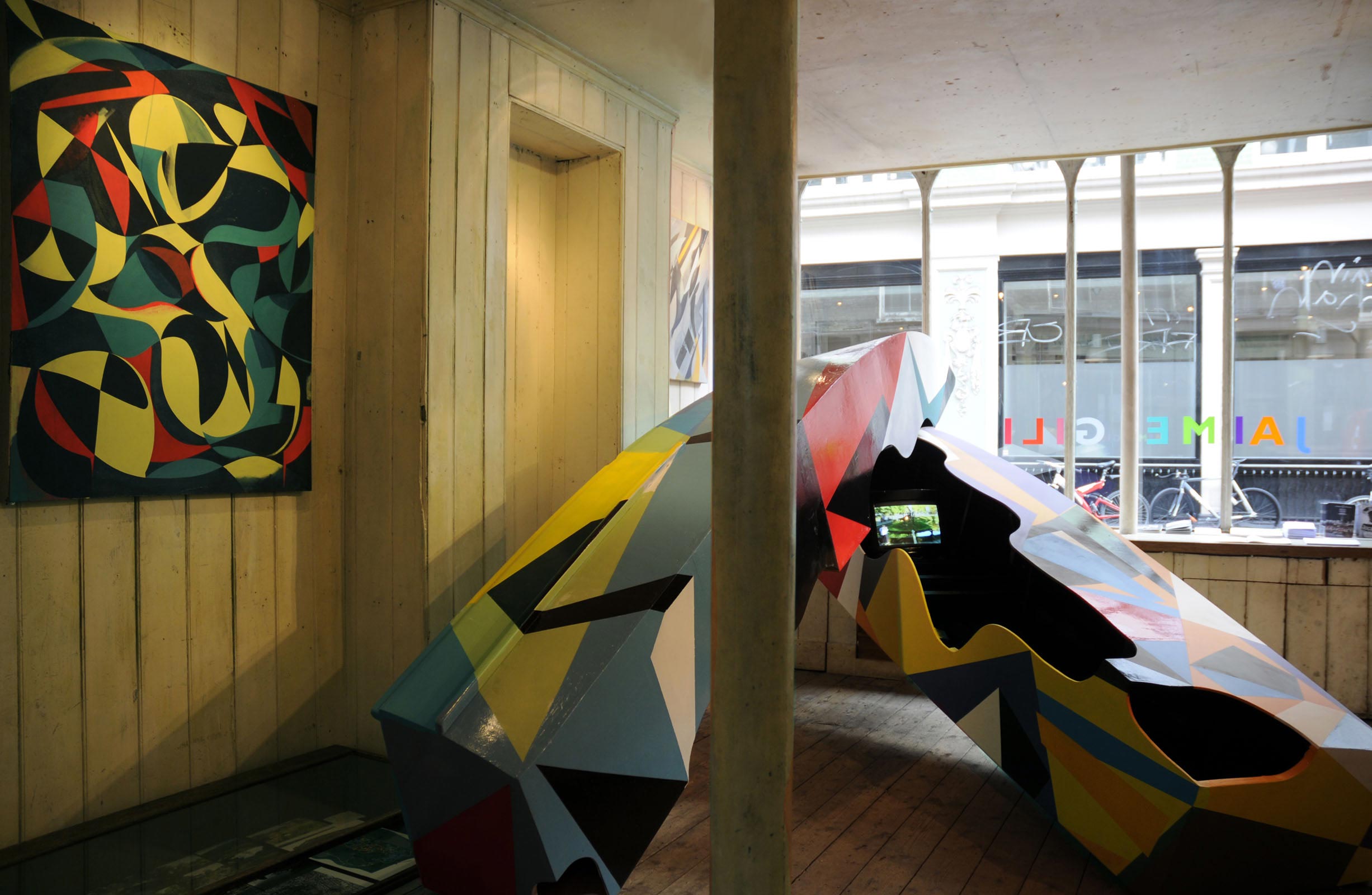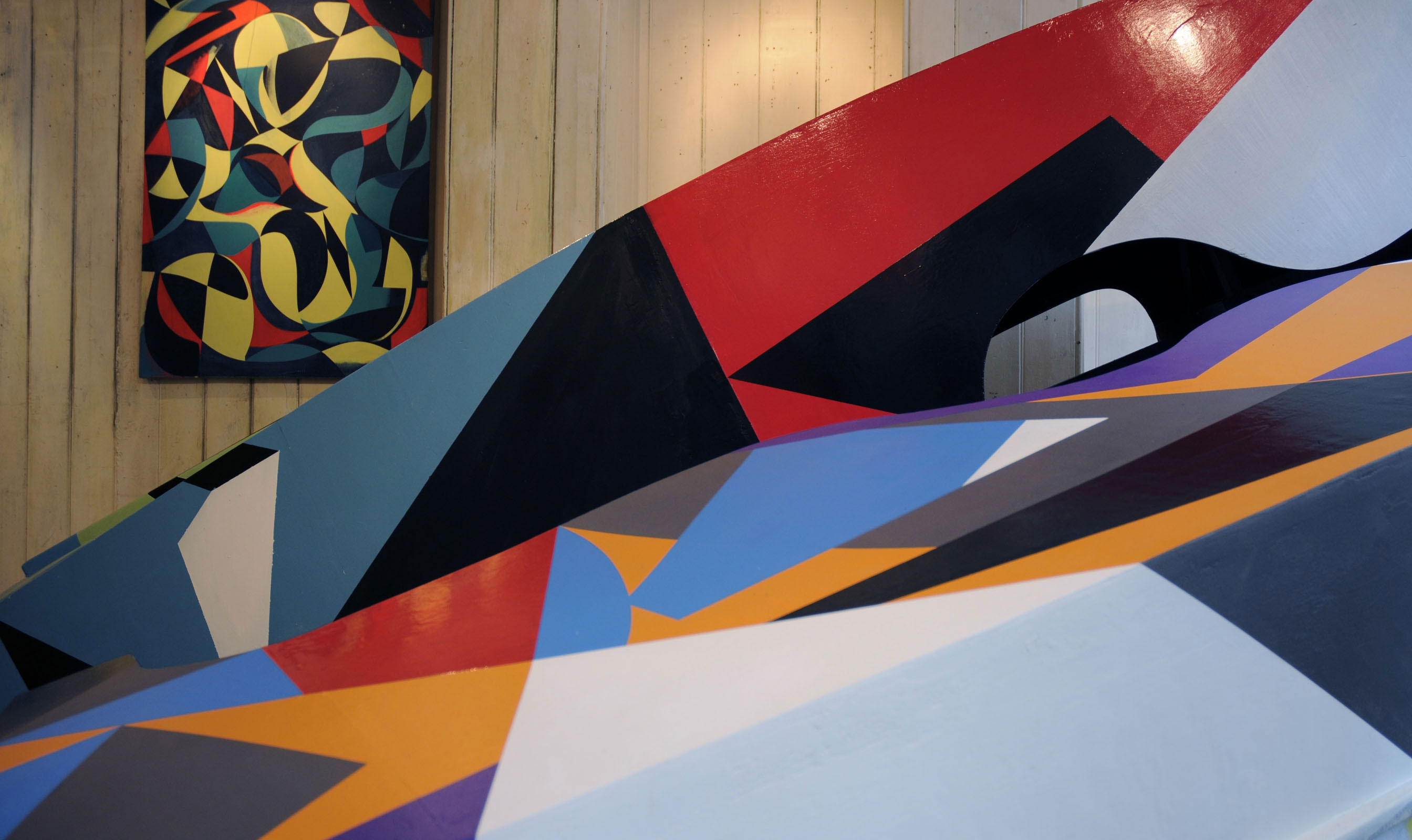 The Lakes was inspired by the landscape design for the Parque del Este, a city park created in Caracas by a team lead by Brazilian landscape artist Roberto Burle Marx. Opened in 1961, Parque del Este is a jewel of Modernist architecture. Gili took the aerial views of the nine artificial lakes in the architect’s original plans as a compositional starting point for his series of paintings and boat sculptures.