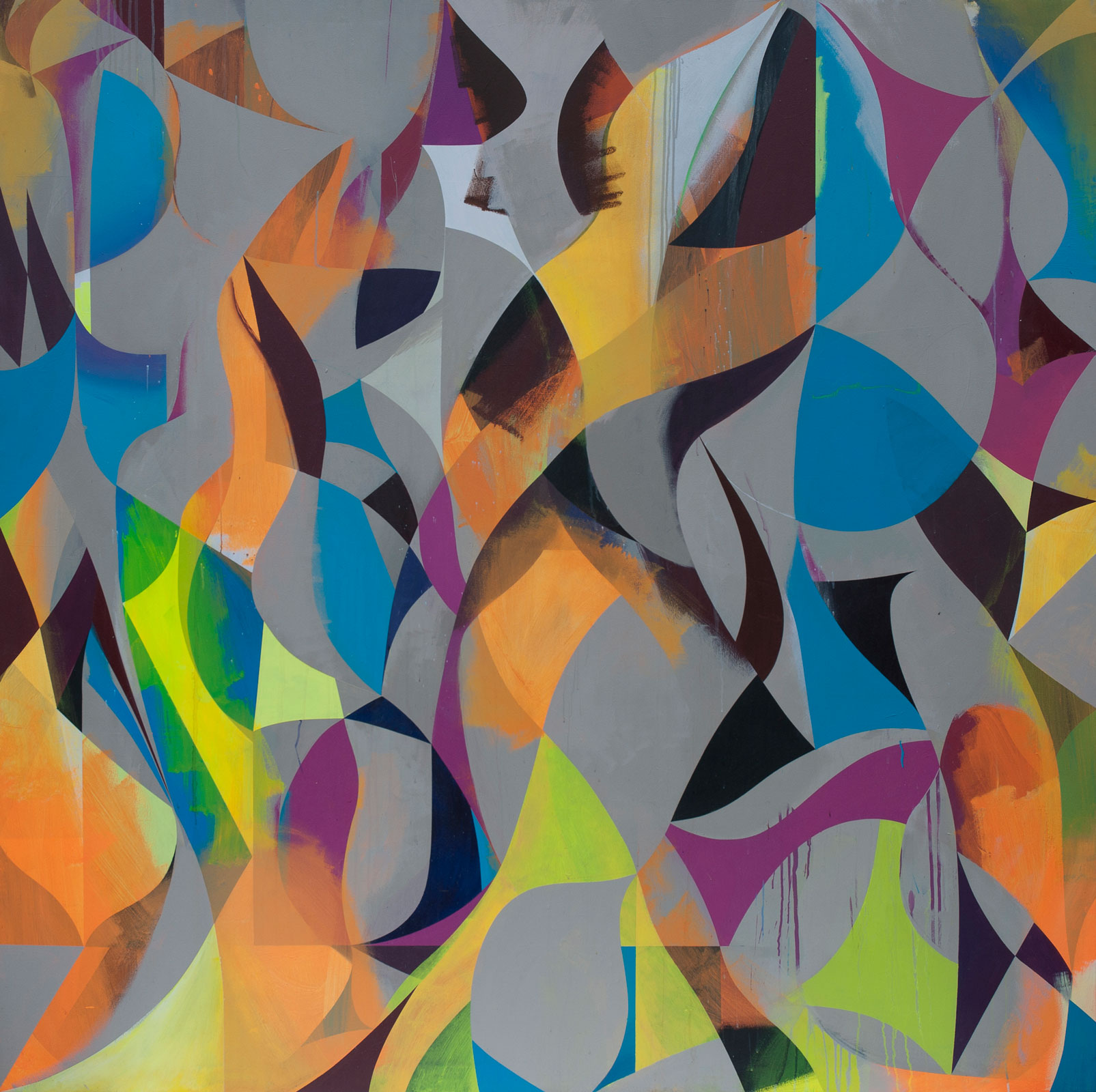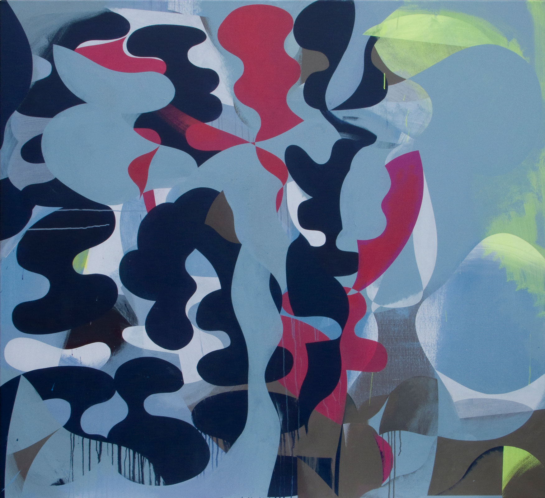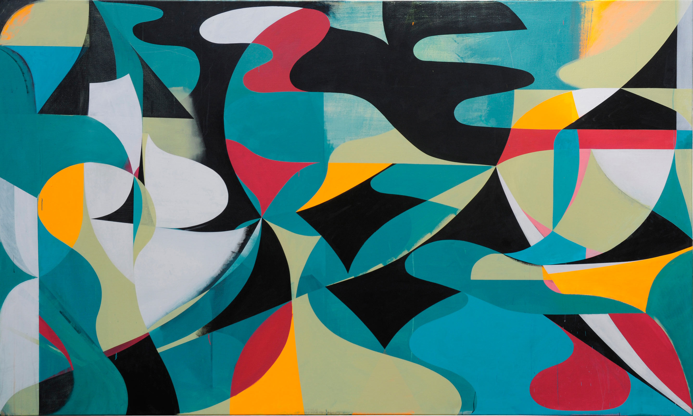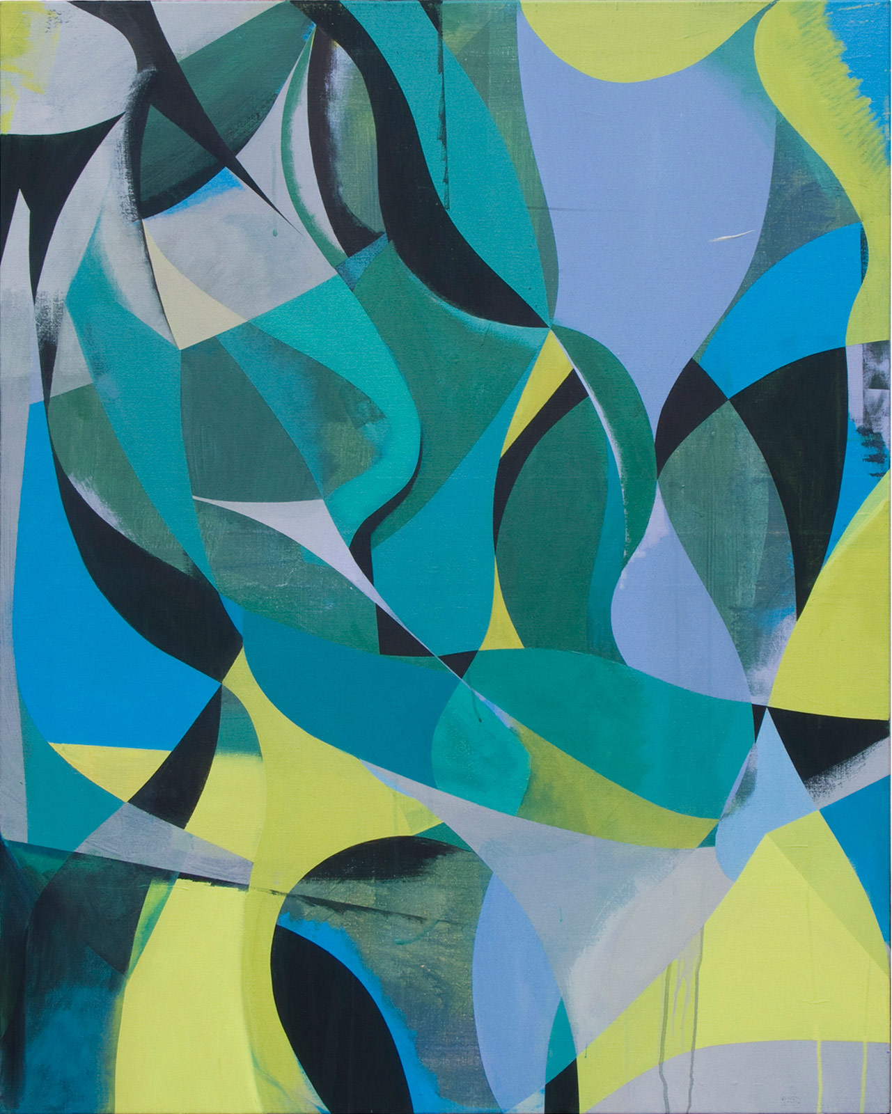 When first shown in the exhibition The Lakes at Riflemaker, London in 2011, these paintings represented a breakthrough in Gili’s work with their flow of curves and their direct reference to Roberto Burle Marx’s iconic park. Since then, however, curves have regularly entered the visual language of Jaime Gili, and have since appeared in other works.